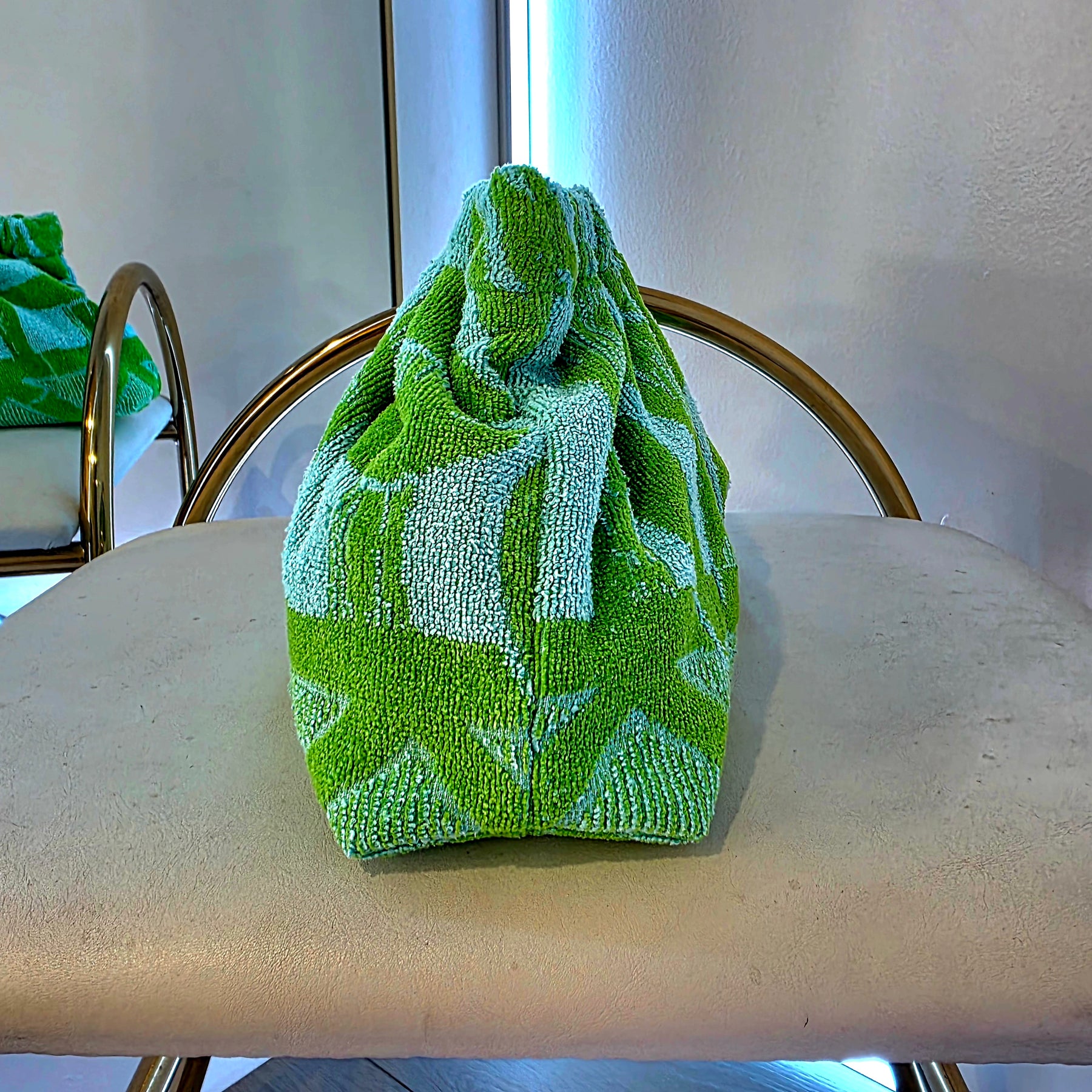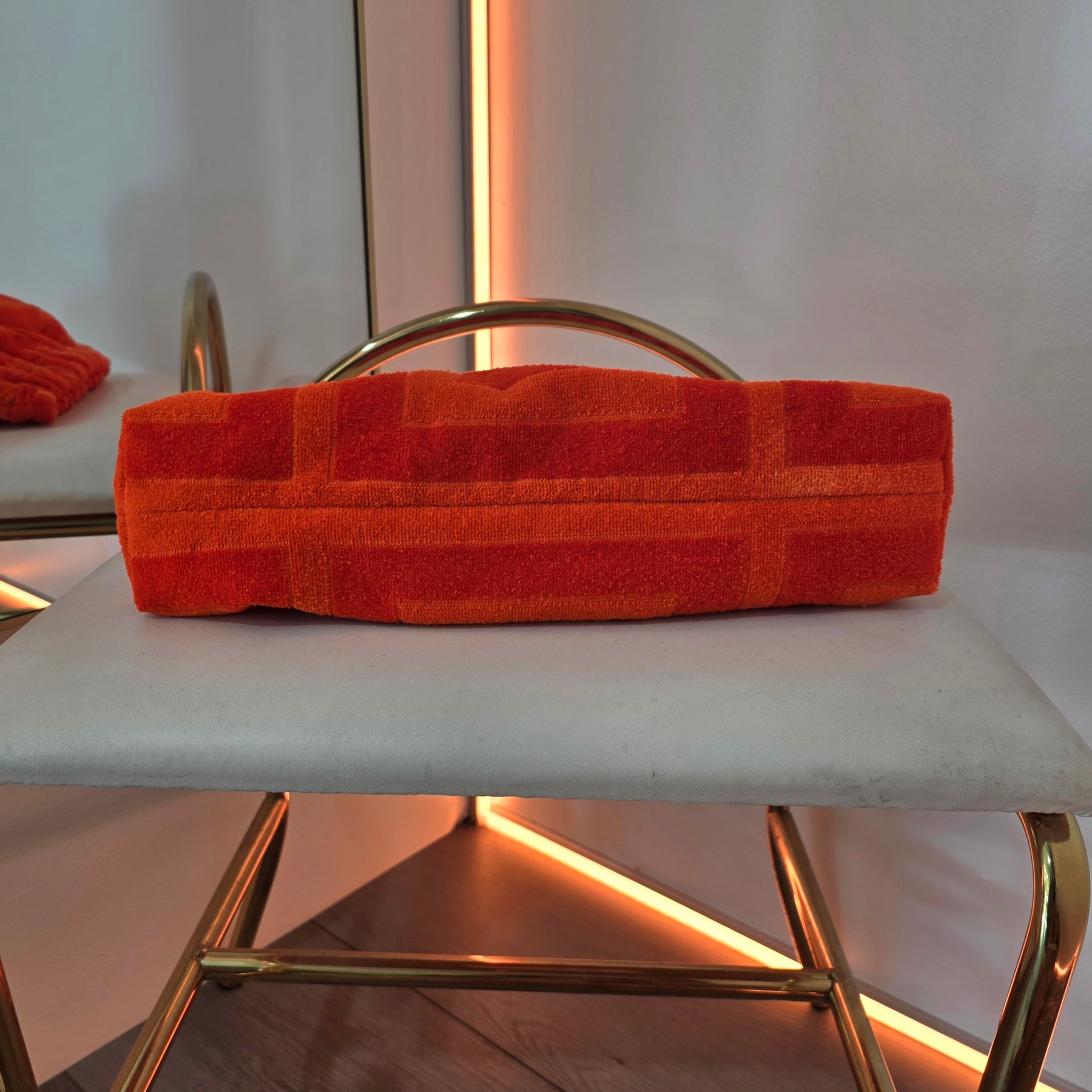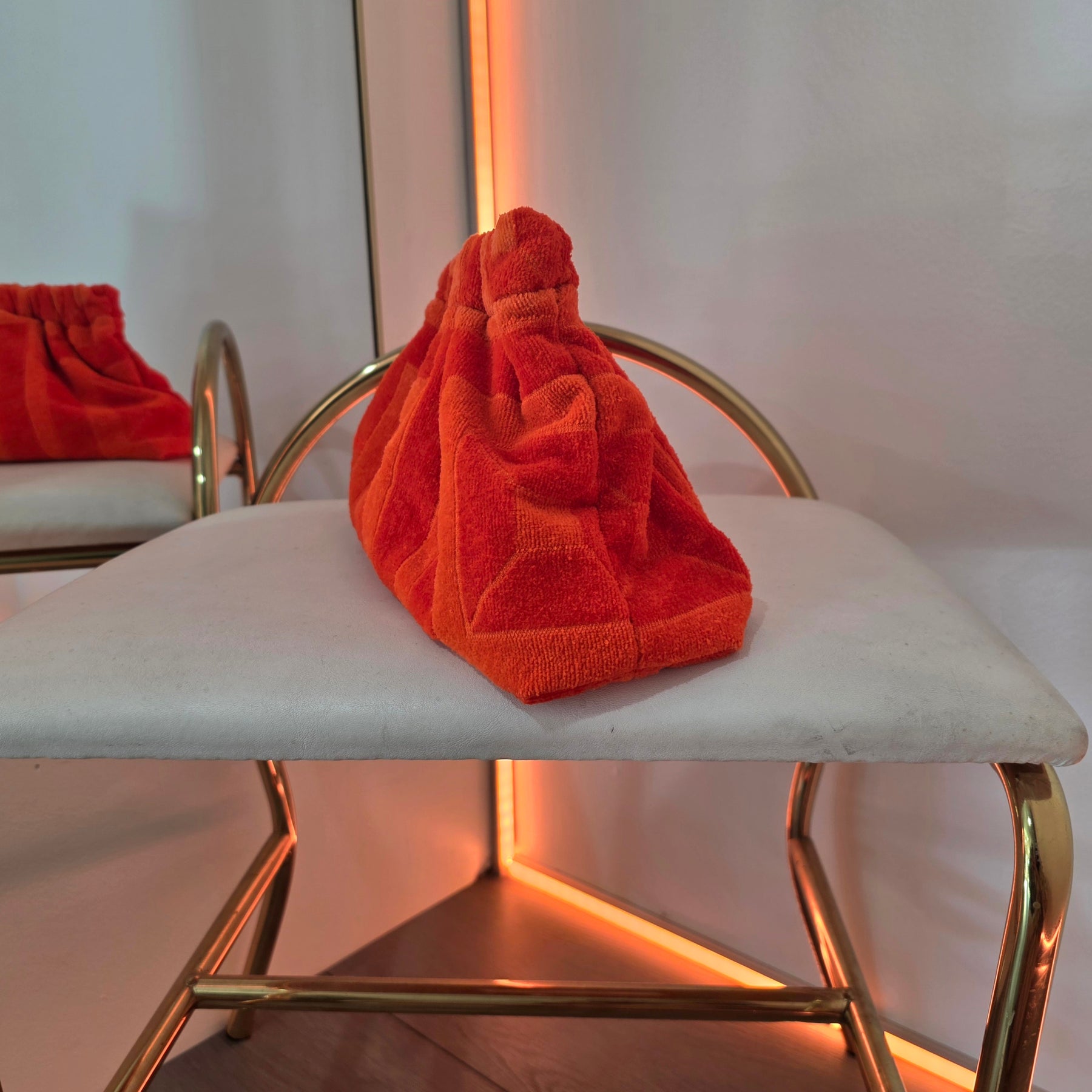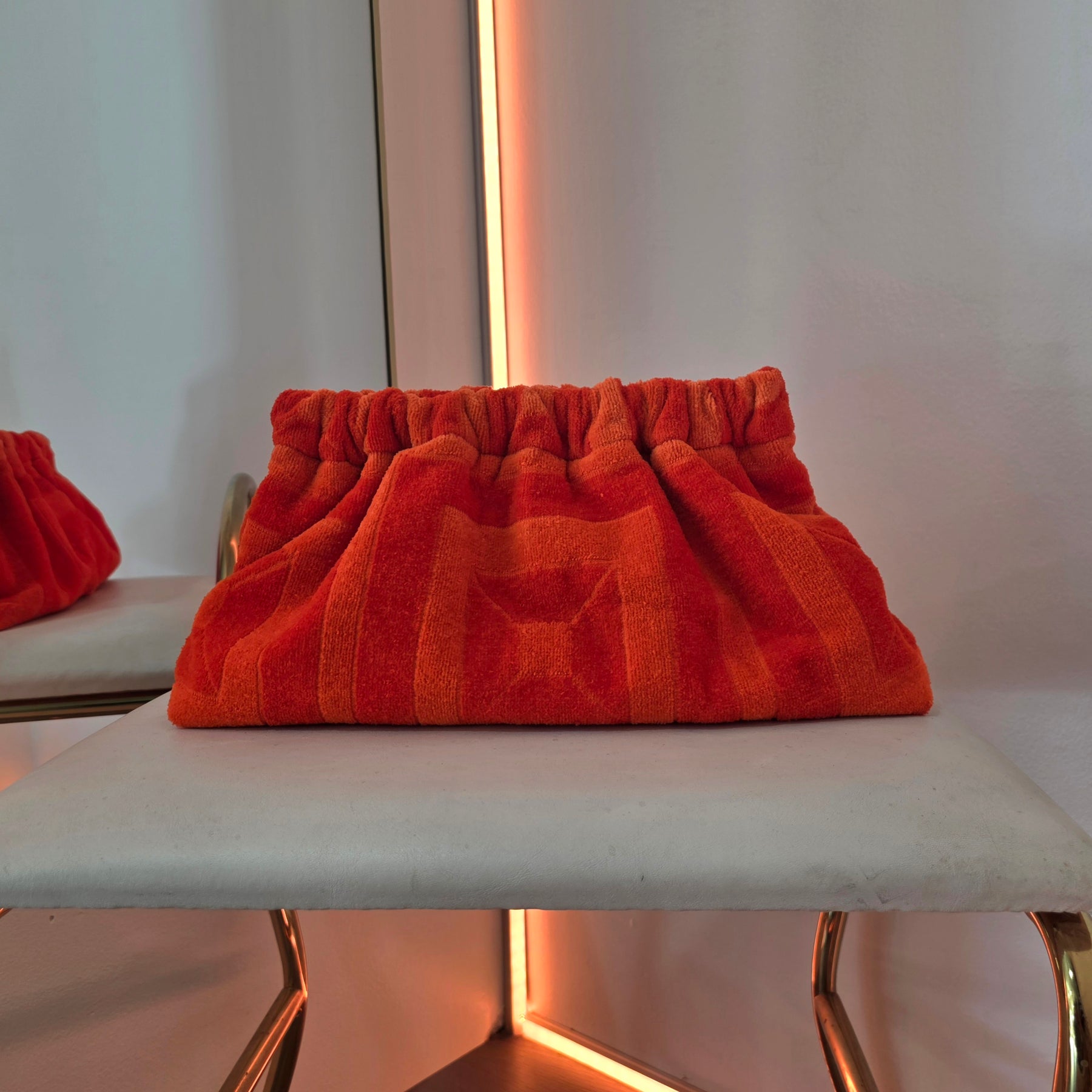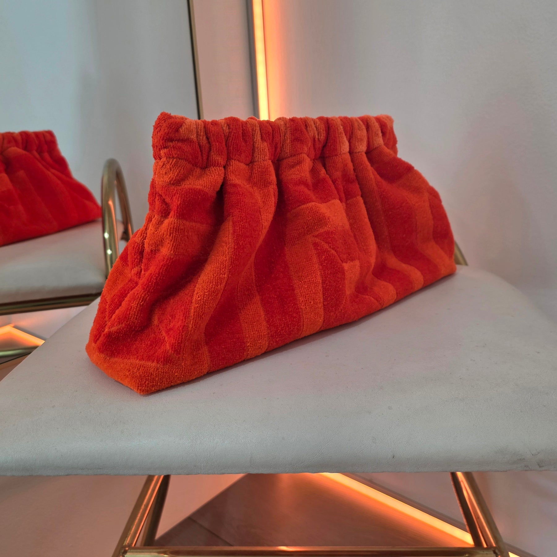 Upcycled 70s MCM YSL Stripe Abstract Honeycomb Terry Cloth Grab Clutch Purse 1 of 2