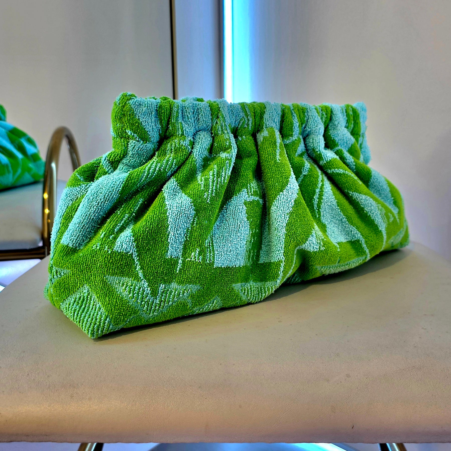 Upcycled 70s MCM Geometric Terry Cloth Grab Clutch Purse