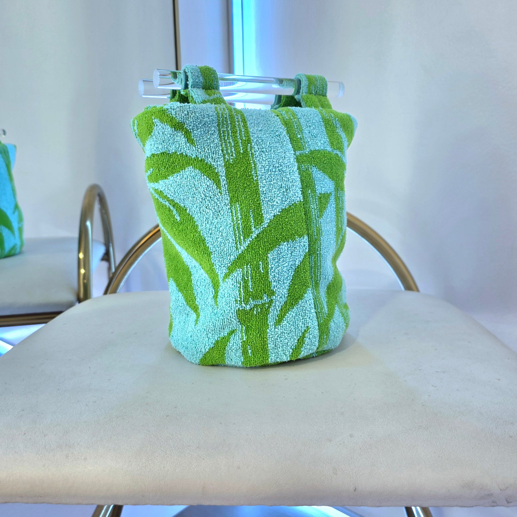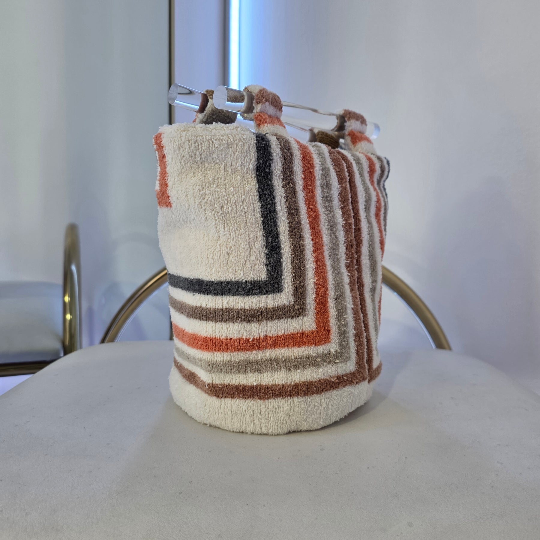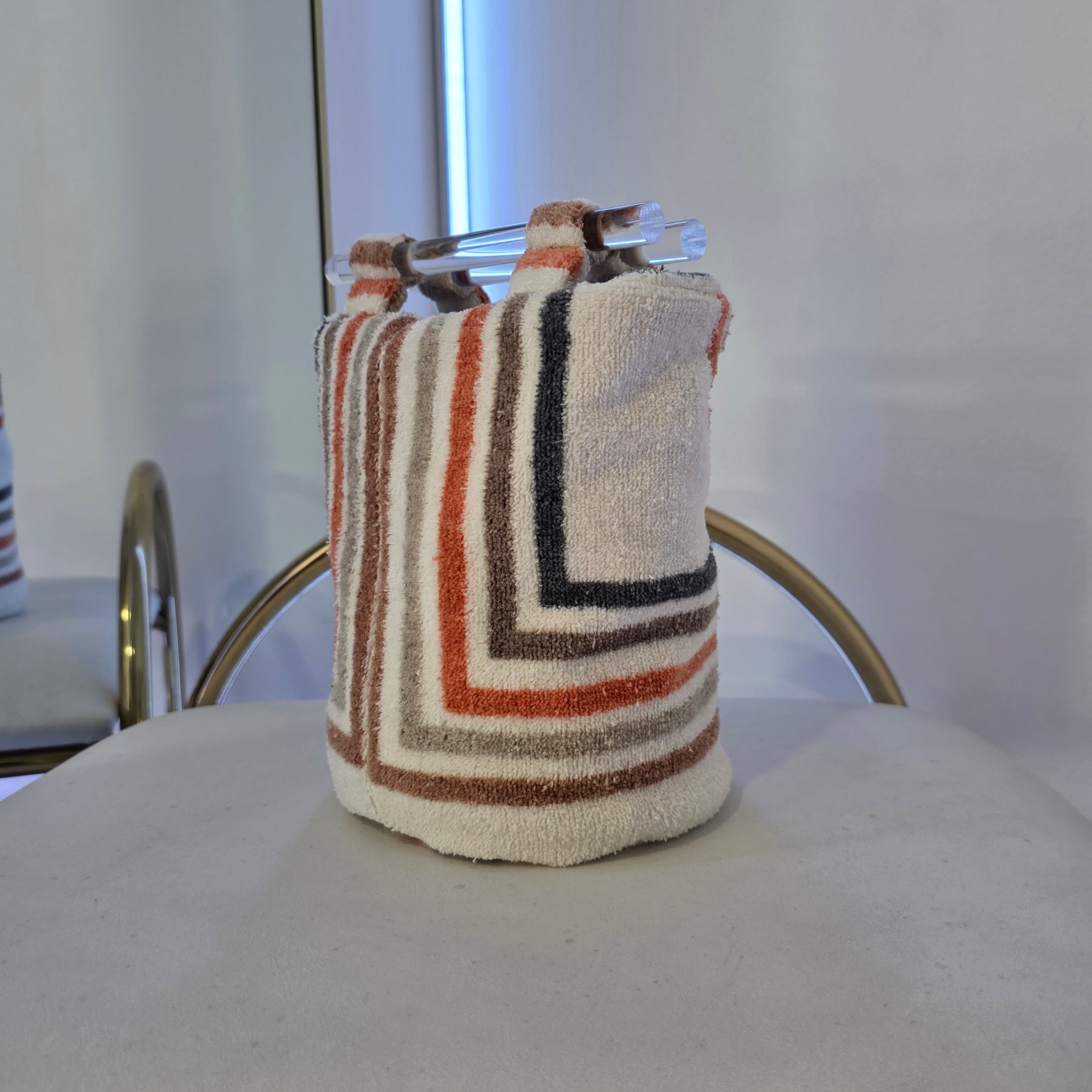 Upcycled 70s MCM YSL Geometric Terry Cloth Lucite Bucket Purse