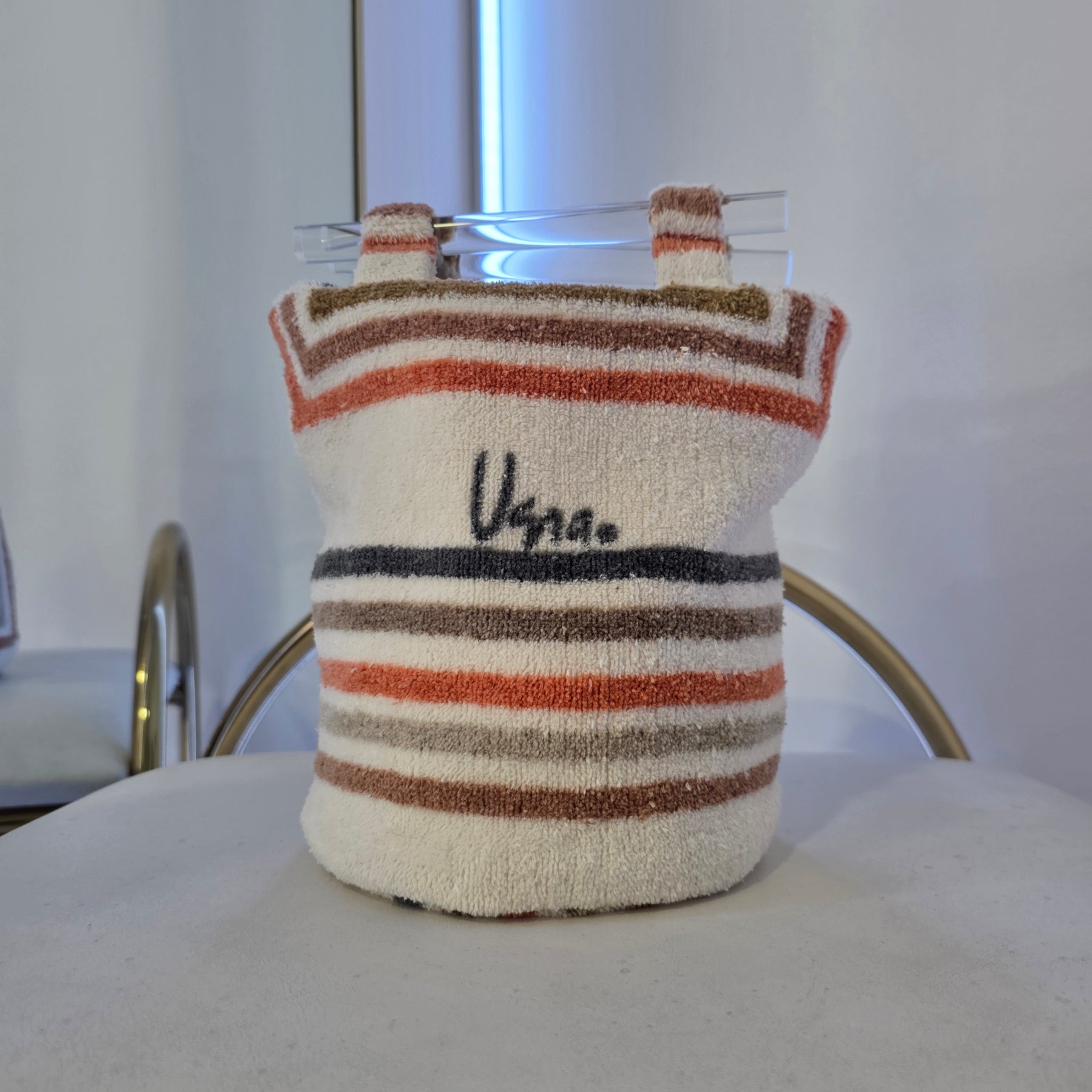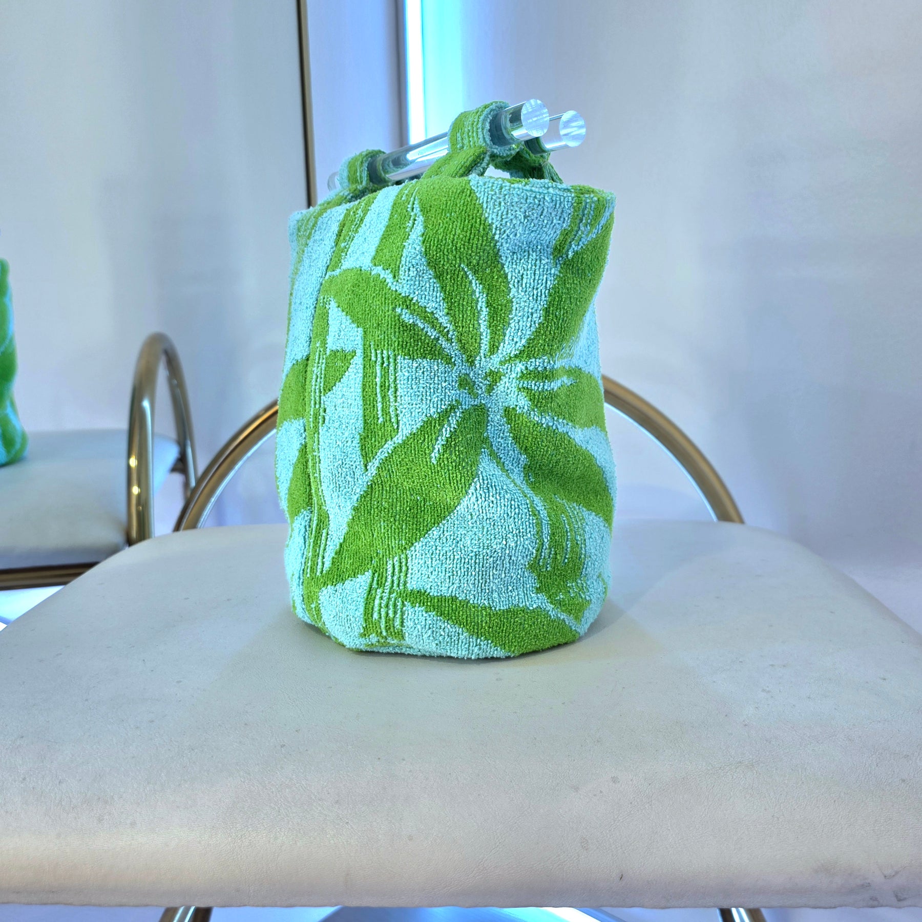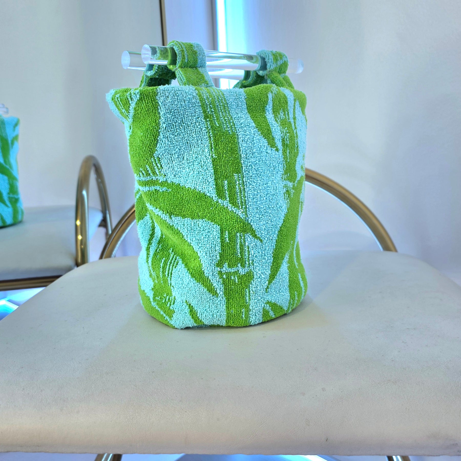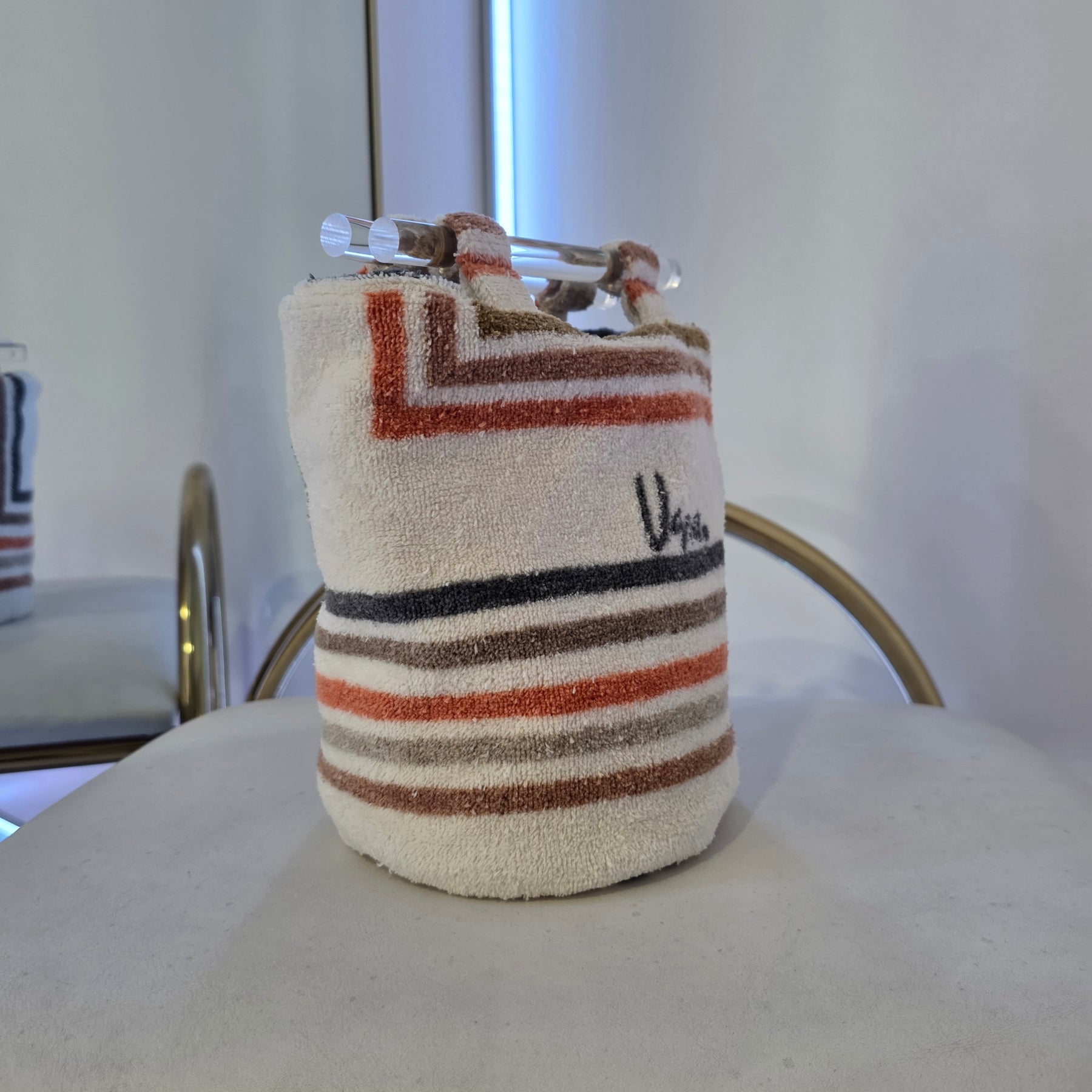 Upcycled 70s MCM YSL Geometric Terry Cloth Lucite Bucket Purse